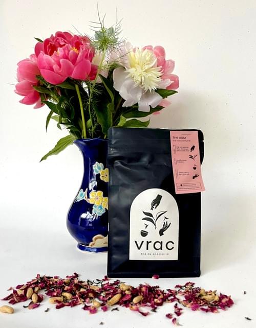 - 100gr de thé vert OUM, un mélange fleuri créé spécialement pour la fête des mères à base de thé vert jasmin, boutons d'oranger & pétales de rose